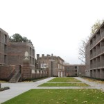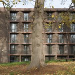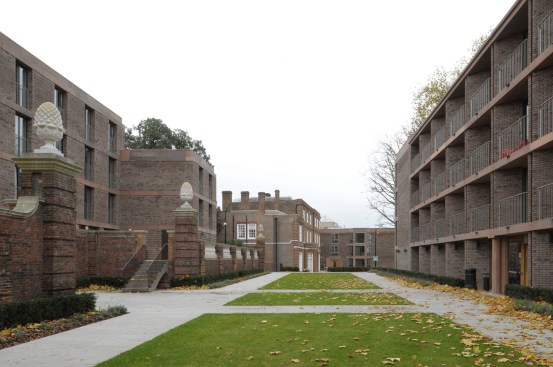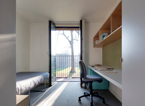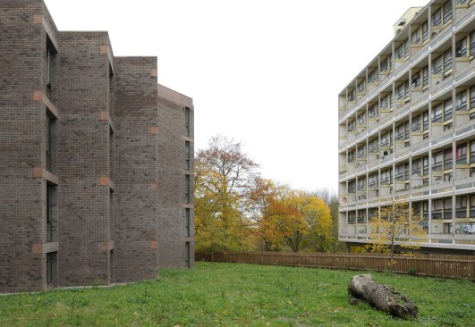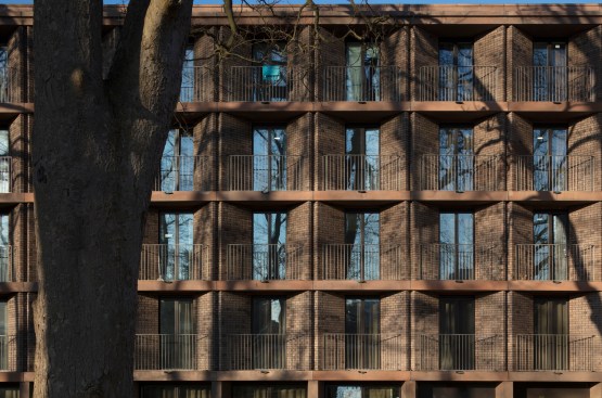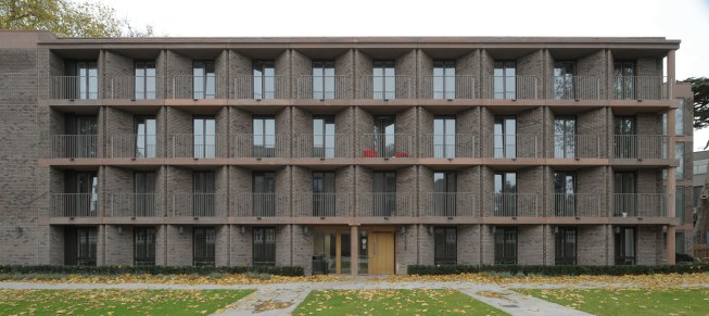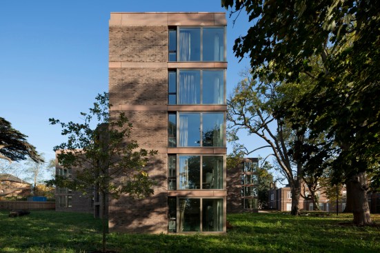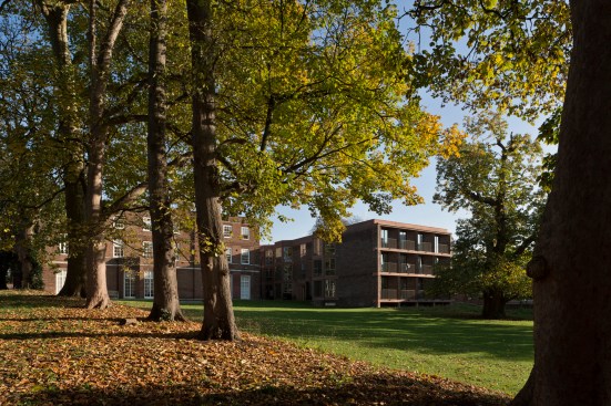 Commissioned by the University of Roehampton, the three student residences are situated in the grounds of the Grade II* listed 18th Century Georgian villa Downshire House and adjacent to the London County Council’s world renowned Grade II* listed Alton West Estate. The design co-opts the garden, part of this historic parkland setting, to make a convivial plan for the student community.
