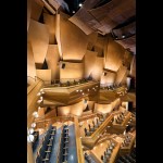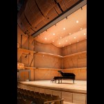 The design of the Musco Center for the Arts at Chapman University creates a place for the musical arts to thrive on campus. The new 1,000 seat concert hall is a multi-purpose facility designed first and foremost for music, but supporting the dramatic arts as well. Working with our acoustician, we have created a room for music in a multi-purpose theater that creates the look of a pure concert hall through the integration of an orchestra shell and multi-part pit lift, allowing for musicians to play further into the audience chamber, creating a synergy between audience and performer. The design of the shell merges and blurs the separation between stage and audience chamber, creating the visual perception of a single room concert hall. Because of the acoustic design, when the room is configured in concert mode, the stagehouse is completely integrated into the “concert shell” making the room feel more intimate and reverberant. While excellent in the symphonic mode, the hall will also successfully support touring product and university productions as well.