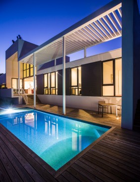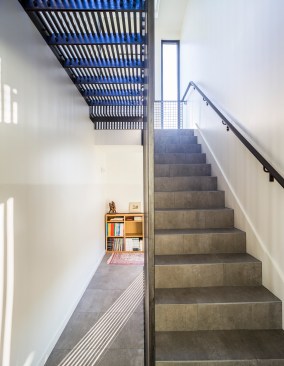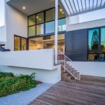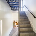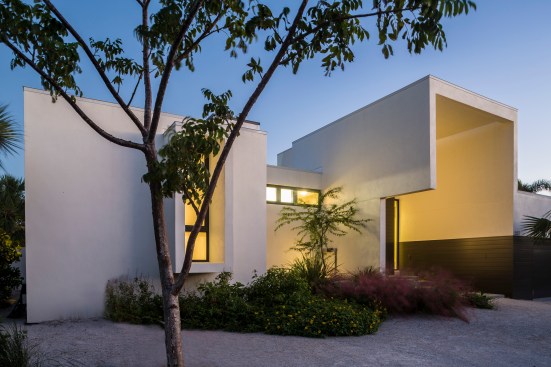 The design of the Charron Residence is based on the plan of the clients’ former condo in Switzerland which they enjoyed residing for a number of years. The condo was on the 3rd floor of an apartment complex with a commanding view of the surrounding mountains. It opened to a wide terrace on two sides. The Swiss condo floor plan was cut and collaged into an arrangement of spaces suited to the conditions of the Florida site. Without being bounded a neighboring unit above, the new design opens up to volumes of spaces and reconnects the elevated house to the site both through a roof terrace and the lower pool terrace. A mezzanine level on the way to the roof offers a new vantage point of the living space below creating diagonal views in section. A circulation loop is created thanks to two exterior stairs connecting the house down to the pool terrace below. The guest bedrooms that will serve as the owner’s offices are wrapped by a continuous path. Starting from the master bedroom, the path descends to the terrace, continues along the pool and climbs back up to the dining terrace, crosses the two-story volume of the living room, and returns to the corridor leading to the master bedroom.