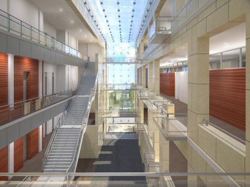 through Four on the south side of the atrium house a variety of specialty support functions for the