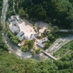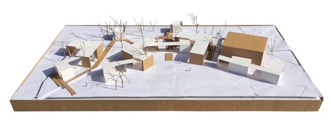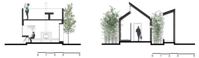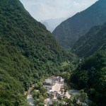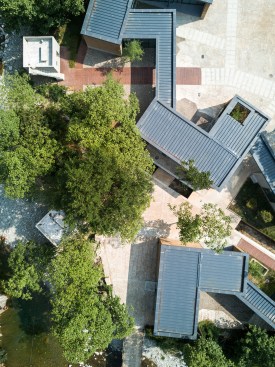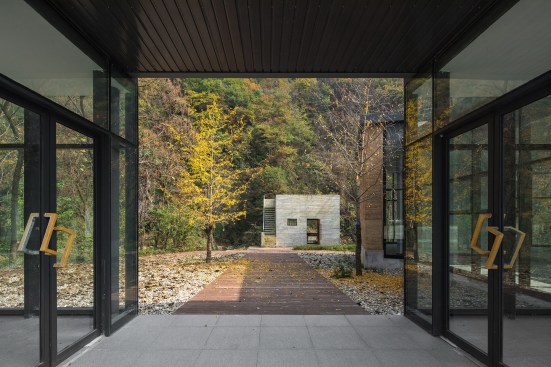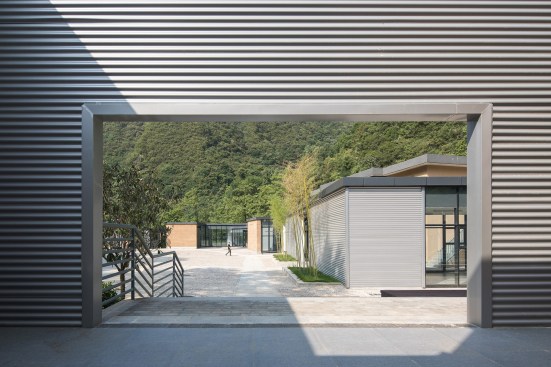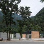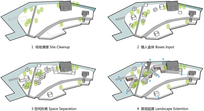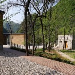 The previous buildings is no reasonable layout and lack of respect to natural landscape. The three original buildings and big trees are preserved except removing restaurant volume. After completing site clean-up, we plans parking lot and toilet in the west side. The new boxes are placed into the east part of site. Following the guidance of natural landscape, all the boxes choose their appropriate size and location. Box of exhibition & visitor service is displayed in a relatively empty plots; Box of restaurant closes to river; Box of tea room faces to Cliff and box of toilet is hidden into bamboo trees. Those new boxes, attaching the preserved buildings, carefully disperse into elements of nature, create a prototype of the densely landscapes settlement. The second step is that boxes are solidified two walls. The other two walls are pushed out far or near depending on program and view. Different height of the wall form a spatial overlap. At this moment, final layout is fixed. It consists of 6 groups of 8 buildings with different sizes. A total construction area is about 1,400 m2. The scattered layout brings a settlement-type spatial experience. The small volumes, accompanied by the separation and overlap of space composition, further digest the mass. Furthermore, it shows a poetic penetration between architecture and landscape.