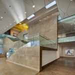 This three-story addition to the Chazen Museum of Art at the University of Wisconsin-Madison is reverently described by the jury as a “beautiful extension of common sensibility.” The project connects seamlessly to the original museum designed by Henry Weese in 1969. The new and existing buildings unite by a bridge gallery at the third floor to create a promenade of gallery space. The addition doubles the former exhibit area, allowing much of the collection in storage to go on display. Space in the new wing includes a gallery for temporary exhibits, an area for art storage and exhibition preparation, teaching rooms and an auditorium. Taking cues from the original structure, the architect has created a fraternal twin with elegant design interpretations. This is expressed on the exterior with a limestone band that morphs from the existing bed-face stone to the delicate cupped stone of the new addition. An interior court in the new third-floor center gallery descends down the monumental stair and the space opens publically with a double-height glazed lobby. The project’s concept begins as homage to the existing building – yet, through thoughtful design, it is transformed to create new and familiar experiences for viewing art.