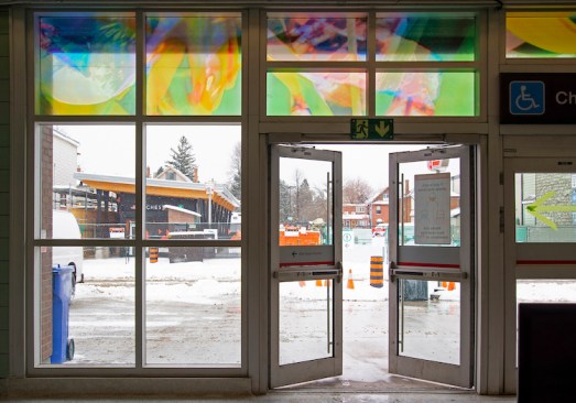 The artworks portray native plants and flowers found in the neighborhoods and ravines surrounding Chester Station. Depicted are milkweed, verbena, trout lily, and blue flag iris colliding together in double-exposed photographic overlays.