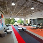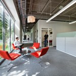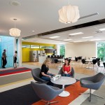 The openness of the architecture blurs the boundaries between the work environment and leisure spaces, increasing opportunities for collaboration and interaction. All of these spaces are visible from multiple vantage points to maximize energy and interaction while taking advantage of the natural light brought into the building via enlarged glazed openings