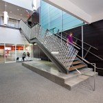 The student entrance serves as the Conference Center Pre-Function space. Student Dining is also located here as a sub-section of the Conference Center pre-function. The circulation paths of students and visitors in this space are separate, but their adjacency increases the space’s use and elevates its energetic feeling.