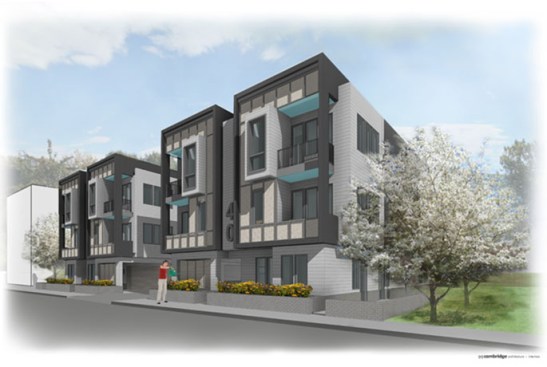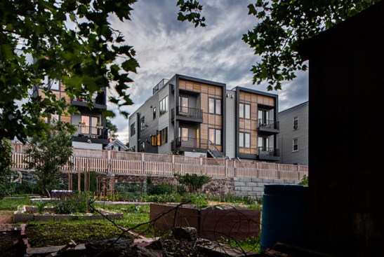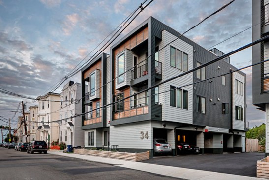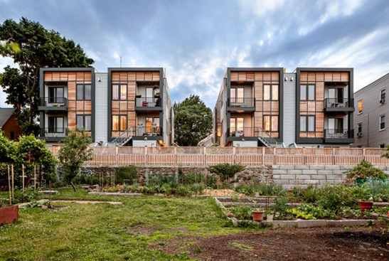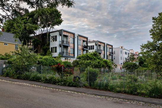 This 8 unit residential building is located in the Jamaica Plain neighborhood of Boston. The project has been developed using interlocking duplex floor plates to optimize views and exposure to the southern light. Each unit has both outdoor space and a visual connection to the adjacent community garden. The building is clad with various exposures of cement-board siding which remain as a constant as the building ages. In contrast, cedar clapboards have been introduced on the street façade that will develop with the neighborhood.