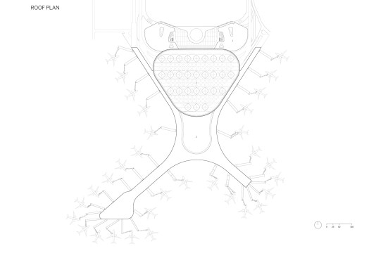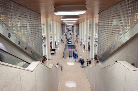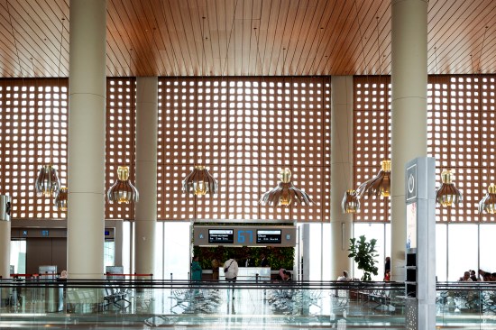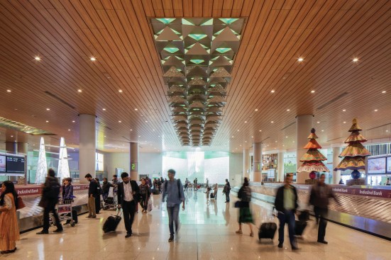 The architects hit on this eye-catching solution (along with decorative motifs in the flooring and fixtures) by observing and consulting with Mumbai-based designers and craftspeople. From a vast wall covered in the work of local artists, to a multi-tier plan for sorting traffic, to exquisitely careful siting that minimizes disruptions to nearby residents, SOM’s project brings together technology and ambiance in an original, organic synthesis.