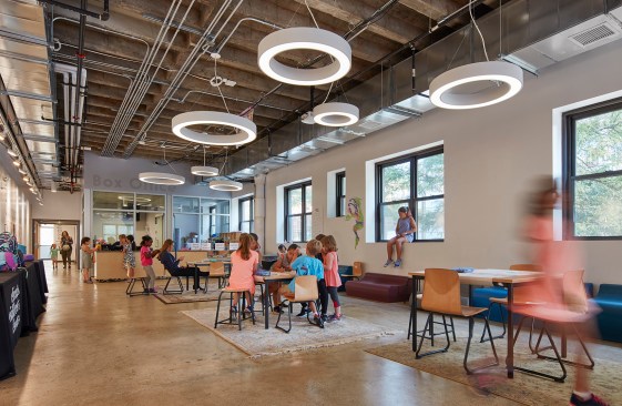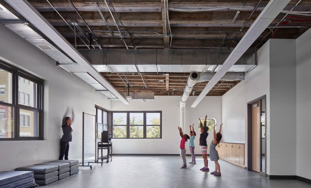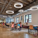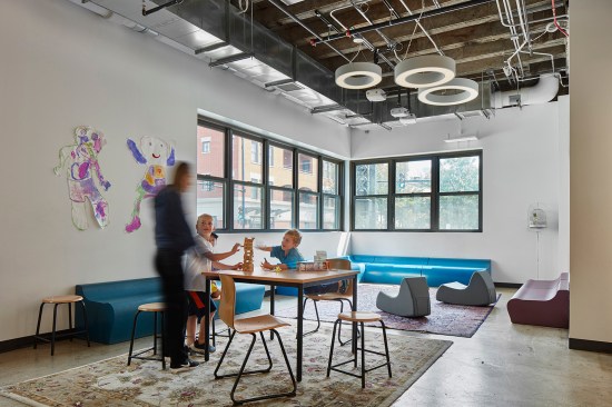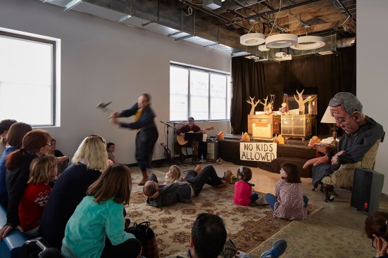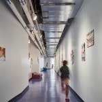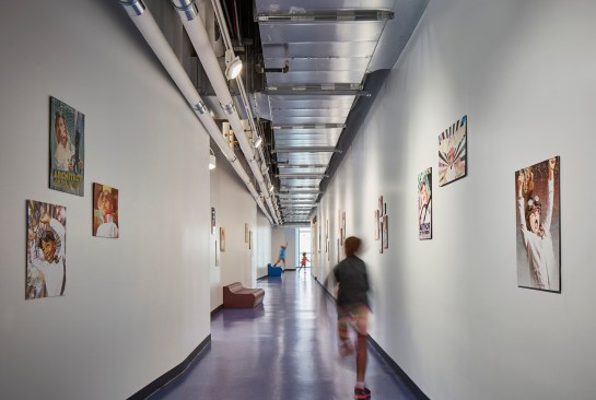 As an incubator and laboratory for and by the young, the design of the Chicago Children’s Theatre speaks strongly to the purpose of the activity it houses, rather than the monumentality of the space. Located in the Near West Side, the project transformed an abandoned and deteriorating 1948 police station into the organizations first permanent home. Named “The Station”, the new facility includes a 149-seat studio performance space, classrooms, administration and support space, and a lobby with an area for storytelling. A theme for the children’s theatre is exposing what typically hides “Behind the Curtain.” By exposing all areas of activity that are usually hidden from view, emphasis can be placed on the process, reinforcing the idea that all of the program spaces can be places to explore the artistry, craft, and technology of the theater. By making these spaces transparent, the entire process of theatre is on stage. Back of house spaces, where children can make scenery and props for their own performances, are left in plain view rather than concealed. Parents and children arriving for classes enter at the corner of Monroe and Racine, where they encounter a generous reception space adorned with costumes and props from past and future performances. A small café, flanking the reception area, provides refreshments for waiting parents. The heart of The Station is the 149-seat Pritzker Family Studio Theatre, located in the footprint of the former jail cell block. The studio is designed with flexible seating to accommodate student performances, smaller professional shows, and Red Kite interactive theater involving students with autism. Once fulfilling a role of authority and confinement, the building is now a place of unbridled joyful interaction with the arts.