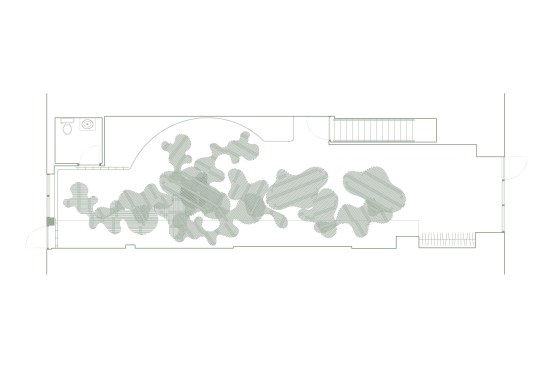 The playground was commissioned by a Brooklyn-based wellness professional with expertise in yoga and childcare who desired an indoor environment for creative, collective play for a small group of children. Architensions looked to the natural world to create the framework for the space, as well as to influential precedents in playground design. These included Isamu Noguchi’s “Contoured Playground,” a pioneering environment encouraging freeform play, and Aldo van Eyck’s series of Amsterdam playscapes, where multifaceted forms inspired different types of interaction and activity.