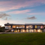 Chilmark House is a 118’+ long sleek black barn above and a recessed “L” shaped hugging into the hill below. he core public spaces are upstairs, flowing into each without ever losing a few of the ocean. he lower level features shared bedrooms, play spaces, an exercise room sprawling out into a meadow and interior garden spaces for quiet reflection and reading.