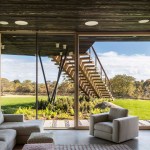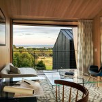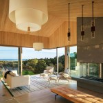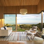 The interior approach plays off the architectural context much the way the architecture plays off the landscape. A muted palate of bleached ash planking and bleached plywood gives way to opportunities for color and texture in the furniture and the textiles. At the heart of the house lies a giant hand carved walnut dining table designed specifically for the space.