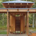 Approaching this summer house entails a long stroll through a scrub oak forest. As residents or visitors walk along the raised boardwalk their first encounter is with an outdoor shower. It’s a place to rinse away stress and let go of inhibitions before entering vacation mode. Situating the shower between parking area and house also lets beach-goers clean off before heading inside. The judges liked the idea of making “the outdoor shower a real event” and found its design both “cute and cool.”