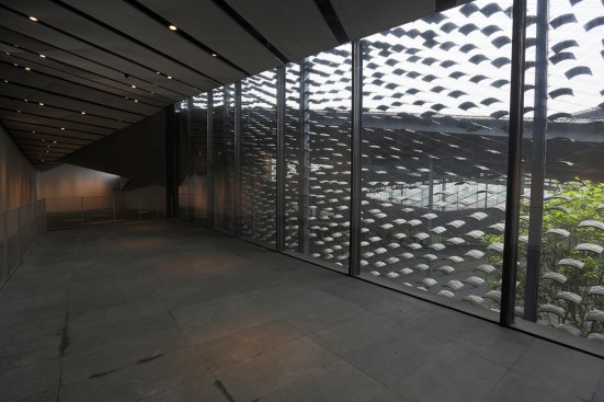 covered with a screen of tiles hung up by stainless wires, and it controls the