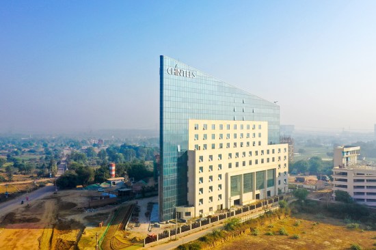 The Chintels Corporate Park is conceived as a boutique office complex where efficiency meets clean and contemporary aesthetics to create a landmark office building in the suburban commercial hub of Gurgaon. The project is visible along a flight descent and is designed to be iconic and distinctive through its form.As one moves down from Dwarka express line of the Delhi airport, the crown is witnessed along with the rhythmic stepping of the green terraces.