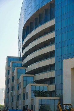 The Facade cleaning system has also been planned very diligently with an inclined rail and staircase being planned along the outer periphery at the top to make the activity of façade- cleaning safe and convenient. The glass panels are carefully chosen to give a smooth curve and at the same time minimize the wastage on account of curved surface. The Signage of the tower sits prominently on the pointy top crown and because of its gently curved surface, it reads from the front as well as from sides, being seendistinctively from over a km away. Perceived as an iconic spot in the otherwise dotted skyline of Gurgaon workspaces, Chintels Corporate Park crafts a unique identity for itself as a green work-park in the sky!!