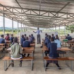 Referencing regional school planning typologies, the design of the classroom structure transforms the standard model to create a new paradigm. The design provides for ten teaching and learning spaces compared to the four rooms found in the typical prototype. The window openings and roof canopy are configured to maximize daylight within the classrooms. Clerestory windows are integrated into all the classrooms with a continuous roof overhang serving to protect spaces on both levels from harsh solar gain during the summer months. Adjacent to the classroom building is a community gathering space, a triangular shaped structure, providing shelter from the sun and rain and a flexible space for eating, gathering and community celebrations.