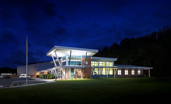 The design of the building was to convey a modern, fresh appearance; informal and inviting in many respects. The single-story office building needed to work with a somewhat typical pre-engineered warehouse and, in order to balance the scale of the two entities, the roof was elevated at the entrance to match the warehouse height and to direct visitors to the front doors. Brick, metal and aluminum storefront were chosen as the materials of choice. The repetitive stainless steel clad roof supports were intended to serve as a symbolic reference to electric transmission, the hallmark of the Cooperative. The project costs came within budget and construction was completed in 2016.