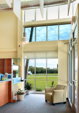In an effort to demonstrate to their members their commitment to sustainability, it was the client’s directive that all aspects of the project, including the site, be designed in accordance with the United States Green Building Council (USGBC) LEED Rating System for new construction and major renovations. The LEED Certified Silver building powers itself primarily from an on-site solar array. Natural daylighting, recycled products and employee control of workspace comfort were all techniques utilized throughout.