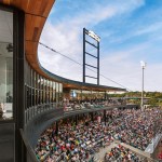 As if Minneapolis-based Snow Kreilich Architects’ design for CHS Field weren’t cool enough on its own merits, just think: The independent-league baseball team that plays there, the St. Paul Saints, is partly owned by actor Bill Murray; the facility occupies a former Gillette razor factory; and it set a record last year for the world’s largest ever pillow fight, featuring some 6,000-plus combatants. To contain all this hipness, the design team (which also included AECOM as sports architect and contractor/architect-of-record Ryan A+E) have made the building an integral part of the artsy St. Paul, Minn., enclave of Lowerton. The surrounding concourse is tied into the neighborhood’s bike trail, dog owners can watch games gratis from a nearby municipal dog run, and the entrance plaza doubles as a connection to a farmers market directly opposite, whose customers have access to the stadium’s bathrooms through streetside entrances. The whole complex, in fact—with its low roofs, its wooden ceilings over the stands, its glass-enclosed boxes in elegant steel frames—seems surprisingly domestic, welcoming, and open to the city around it. It’s an approach that harks back to the grand tradition of early 20th century ballparks like Boston’s Fenway Park and Chicago’s Wrigley Field, but in a decidedly modernist idiom that eschews historicist tropes like the grand arches or fake bunting that have been trending in stadium design since the ’90s. And as an instance of adaptive reuse, it’s practically sui generis, avoiding the demolitions and displacements (to say nothing of the sometimes outrageous cost overruns, usually at public expense) that are practically synonymous with big-time sports stadiums.