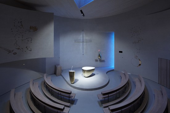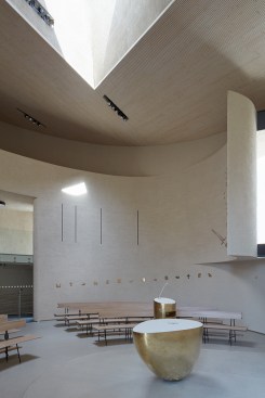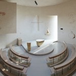The interior is simple and clean to bring a sense of quietness and peace. Older churches are full of visual information – the entire story is written in paintings, sculptures, in the decoration. For exemple interior in Baroque church was completely descriptive to give people an idea about Jesus life. People today are overload with information, the church should perceive only the purity of space and peace and realize your inner self. There is a space without personal identification visual smog – a simple, focused, and pure recollection.