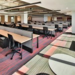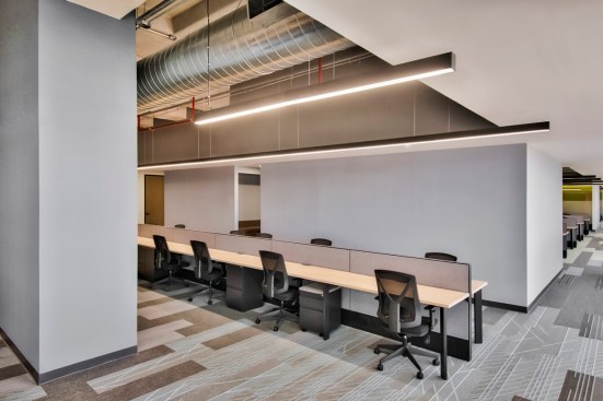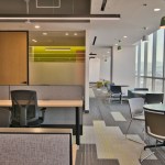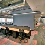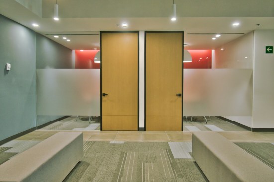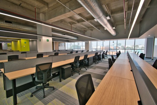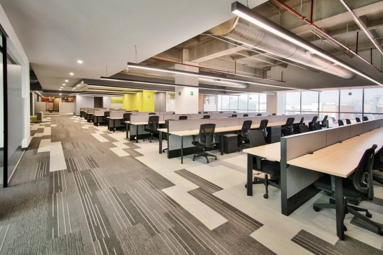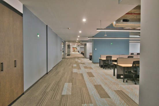We a basic color palette each quarter or team was given identity inside the office. At the center of the main circulation the external meeting rooms, training rooms, cafeteria and support area were located. The different areas were framed with a play of color on the carpet and vinyl floors, the open or apparent plafond incorporates an industrial, simple and infrastructure image requested by the client.