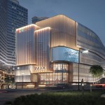 aluminum façade of the shopping malls evokes the idea of Chinese silk wrapped around the jewel-like