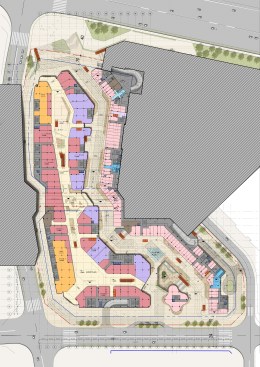 driver of the design is the creation of an outdoor retail street that simulates a green valley, winding across