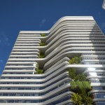The three high-rise towers accommodate 1500 serviced apartments, which provide double-height and