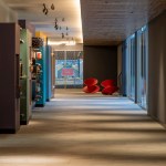 The corridor connects the school´s 5 workshops. Powerlab is where children with learning problems work with different therapists. Design is the only workshop for the school´s staff and not for the students, where they learn and practice everything related with design, communication and the school´s events. Robotics is a workshop for robotic practices and Art workshop is connected with an extension of Makerspace that grew and is the most popular.