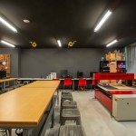 Each workshop was thoroughly imagined and designed in cooperation with the school´s staff in order to understand its use and define its needs, as well as to being able to design or specify the adequate furniture and equipment. Special installations were done for the extraction system for the cutting machines, electrical power feeds on the plafond for the tools and the review and installation of the right type of light for each activity, verifying the security and wellbeing of all the users.