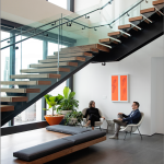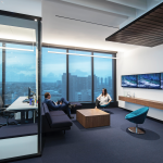 Meeting the AIA 2030 Commitment, design solutions and operational strategies include high efficiency plumbing fixtures; low energy consumption for lighting; daylighting controls; comprehensive office waste management plans integrated in custom millwork; promotion of alternative transportation; specification of materials and furniture with EPDs and HPDs, FISP, FSC, and Greenguard Certification – all working towards zero toxicity goals. Wellbeing is promoted by maximizing daylight and the uninterrupted 360° views to city, ocean and sky help to balance circadian rhythms.