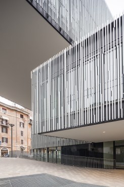 Built by Parsitalia Srl (as the general contractor), previously owned by Hines and now by Investire SGR, which manages it, City of Sun qualifies as an open project focused on sharing and interconnection with the dynamics of the neighborhood, located on the edge of the city centre. Conceived on the basis of a study of the geometries, the solids/voids relationship and a meticulous reading of the local identity, starting with the neighboring Tiburtino II quarter, the project puts public space at its core, developing a complex system of relationships between spaces and heights.