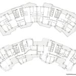 units shaped by the exterior’s curves and for duplex penthouses, where