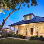 The homeowners purchased their new home in the historic and highly desirable Clarksville neighborhood which flanks the west side of Austin’s downtown. Built in 1915, the house was among the few remaining that had not been scooped up and demolished thanks to its previous owner — who had lived in the house for over half a century and didn’t want to see it torn down. Austin based LaRue Architects spent time researching the home’s history and consulted with a historic restoration expert to help inform their work. The 115 year old home is perched on a hill with one-of-a kind views of the Texas State Capitol and the expanding Austin skyline — uniquely located at the threshold between the sparkling new downtown hi-rises and the historic fabric of one of Austin’s oldest and most storied neighborhoods. LaRue and Foursquare Builders took great time and care to hold on to the home’s historic character. The team set out to painstakingly restore and rebuild — as old and new now seamlessly meld in the new 3,900 SF home. A simple material palette was used: Boral siding mimics the original, traditional exterior in the front while expansive glass, stucco, and metal panels were used for a modern back exterior. Teak decking is used on the porches and the terrace as a unifying element. The painted blue soffit above the porch retains a connection to the neighborhood’s traditional roots and its history as one of the oldest post-Civil War settlements west of the Mississippi. “We thought it was important to not to erase the history of Clarksville and given the home’s age we wanted to convey its history and traditions which are the foundations of this Austin neighborhood,” says James LaRue, LaRue Architects. The home sits on a steep hillside which presented a number of challenges for the intended work. The pier and beam house sat nine feet off the ground at the site’s lowest point and the clay content of the soil–while suitable for pier and beam– added structural challenges for the renovation and addition, which included plans for a negative edge pool and floor-to ceiling windows. With its hip roof and wrap-around porch, the reconstructed front façade remains appropriately in step with the style of the historic neighborhood. “At the street the home presents itself as a good neighbor in form, scale and material, all updated to stay true to the original style. Even inside the front door, the immediate impression is one of a renovated traditional home, scene in the rich shiplap paneling lining the entry hall,” say’s LaRue.