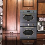 The living room furniture, with dresser and TV panel, is perfectly complemented by two windows on the corner – all made of walnut; with a classic design, very elegant. The dining area also complements the living room, ensuring a unitary aspect for this room. The table with eight chairs upholstered with the same upholstery as the sofas, but in a variant, without embroidery, drawers with drawers, open library – are some of the elements used to create this interior. The atmosphere is complemented perfectly by the decorative pieces, such as, the mirror, the lighting, the curtains in the veil and the soft curtains, by the lighting; but also the architectural elements used.