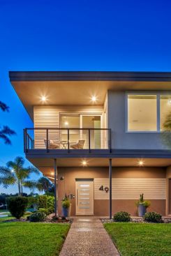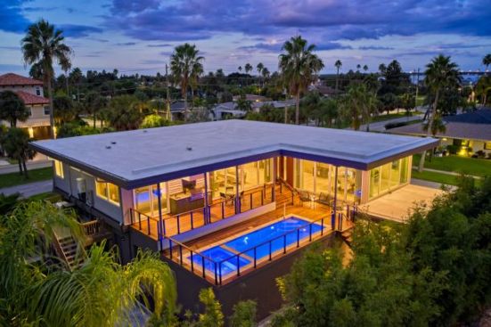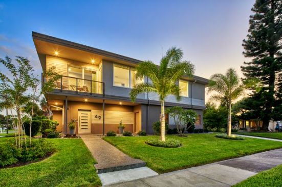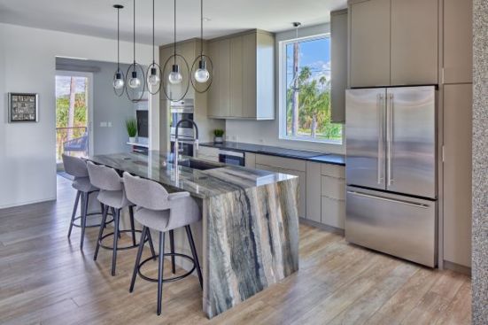 The Clearwater Beach House creatively responds to the changing structural requirements to protect properties from storm surges in coastal Florida communities. Set on a corner lot in the middle of an established neighborhood between the Gulf and the Intercoastal, this renovation transformed an existing CBS (concrete block and stucco) three bedroom, ranch style house set just 4 feet above sea level. With family members living nearby, this location was important to the Owners, so we were charged with creating an entirely new raised living level, in compliance with FEMA requirements to an elevation of 11 feet above sea level. The footprint of the existing house was maintained, the roof was removed and parts of the structure now support the new raised living level.