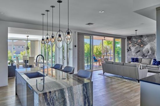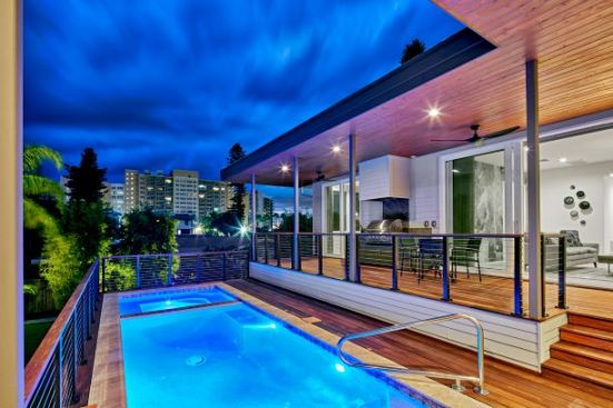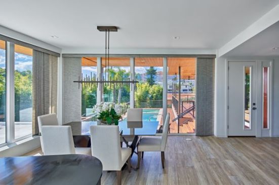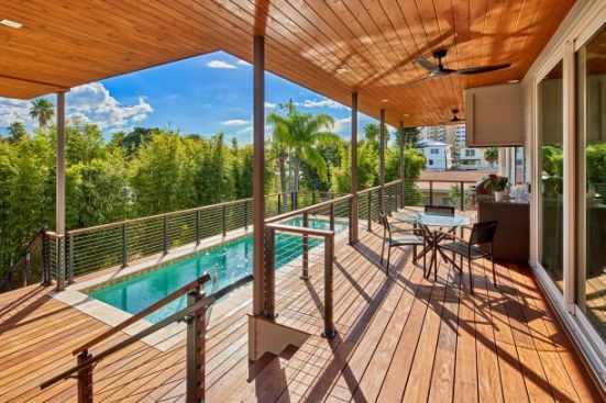 We employed hurricane-proof glazing and carefully concealed an upper deck mechanical system to keep the home fully operational during weather events. A new elevator and stair provide convenient access to the upper living level from the street and garage. The pool and spa are elevated for convenient access to the living level, while being fully enclosed by mature landscape plantings. Even with its new elevated condition, the completed home and outdoor living areas are unexpectedly grounded and quiet as they overlook the surrounding neighborhood.