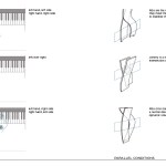 A piece of music came to mind which proved useful in organizing the rhythms of each of the two volumes. Partita No. 1 in B-flat major: Gigue, by J.S. Bach, was written for harpsichord, and interestingly requires the performer to cross their hands, breaking out of the standard notation that positions the left hand in the bass clef and the right hand in the treble clef. The notion of this melodic crossing back and forth led to a sinuous geometric composition between bass and treble, informing the plan and sectional qualities of each volume according to their wavelengths.