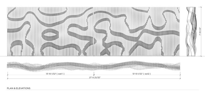 Clefs Moiré is an architectural installation for One North of Boston, a new residential building in Chelsea, MA. The work draws its inspiration from a gigue by J.S. Bach.