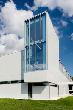 The aesthetic approach is a departure from current trends of design in the creation of a healing environment. Rather than depend on decorative motifs, the chromatically and texturally Spartan expression is intended to act as a canvas and frame for the natural environment. Views to a tranquil and seasonally changing landscape are leveraged in lieu of applied decorative elements. The exterior adsorbs and plays back the daily and seasonally changing qualities of light so common to northeast Ohio, both in terms of shadow and color temperature. The chameleon-like attributes result in a facility that is always in a state of dynamic transformation in an effort to avoid the static and repetitive experience that can be associated with institutionalism. Within the facility, a disciplined approach has been taken to account for and accommodate all of the fixtures and equipment that are inherent in a medical facility to create an environment of visual and sonic tranquility. All of these considerations, combined with carefully chosen and placed art, are engineered to create an experience that is serene and well mannered, a contemplative environment promoting healing and well being for staff and visitors alike.