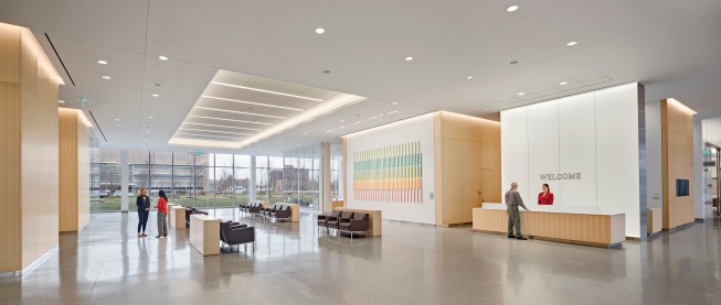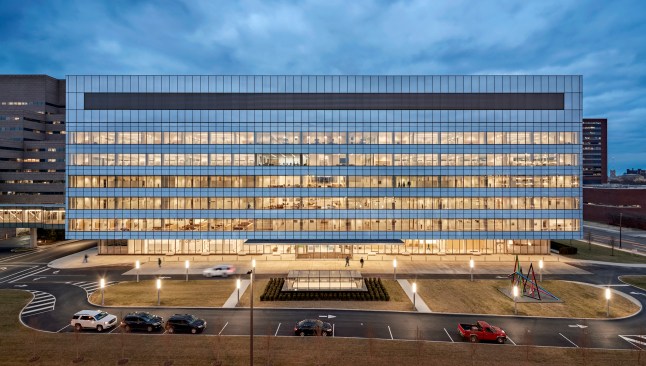 Bringing together patient treatment programs into one centralized location, the new Cleveland Clinic Cancer Building helps improve the patient experience and increase interaction among caregivers. Located on the Cleveland Clinic’s 168 acre main campus along the East Crile Mall, the project reinforces the Cleveland Clinic Masterplan’s green spine. The 377,000 square foot multidisciplinary Cancer Building includes 126 exam rooms, 98 infusion bays, six linear accelerators, seven procedure rooms, and a Gamma Knife room. The prominent cantilevered glass façade and extensive use of glass on the north and south facades will fill the building with daylight – in patient corridors, in all infusion rooms, at care stations, and in team workrooms. The project opened in March, 2017. The Healthcare Architect is Stantec.