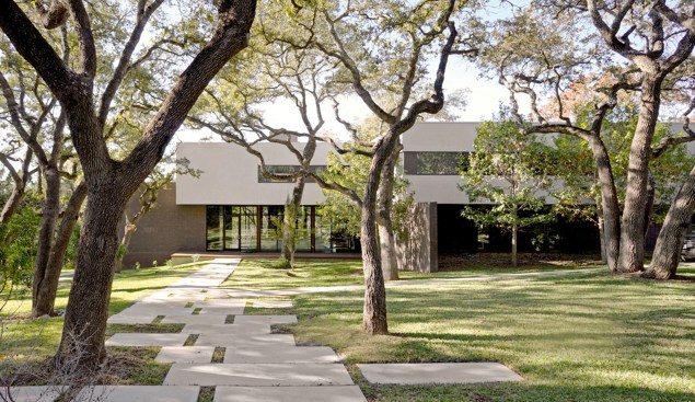 On a densely tree-covered site in the Austin, Texas exurb of West Lake Hills, Specht Harpman was tasked with the renovation and expansion of a modest 1970s house. Much of the original internal structure was maintained, but the alterations sought to erase all visible traces of the original house.