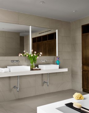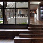 Ceilings of the existing house were low. For the expansion spaces, the ceiling plane was maintained, but the floor was lowered to follow the contours of the site, creating a terraced interior landscape that gives height to rooms while maintaining a modest exterior expression.