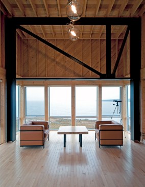 In Atlantic Canada we have a cool, labile climate, characterized by constant wet/dry, freeze/thaw cycles, resulting in a very high weathering rate for buildings. Over the centuries we have developed an elegant, economical light-weight wood building tradition in response to our challenging climate. The light timber frame has also become the dominant domestic construction system in North America. Despite its widespread use, its inherent high level of environmental sustainability, its affordability, and its subtle refined aesthetic, architects have been reluctant to embrace it. The research of our practice, however, builds upon and extends this often understated, everyday language of construction, through modest projects like Cliff House.