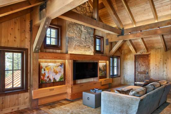 Located in Kremmling, Colorado at 9,000 feet above sea level, on 70 acres of land. The residence sits atop a southern facing cliff with expansive views of the Sleeping Indian rock formation and Green Mountain Reservoir. The heavy timber structure, limited palette, and weathered materials give this building a sense of permanence that far exceeds its actual existence. The rough interior finishes provide a durable material for a rugged, carefree lifestyle, while the technology inside makes this the ideal mountain getaway for hosting friends and family.