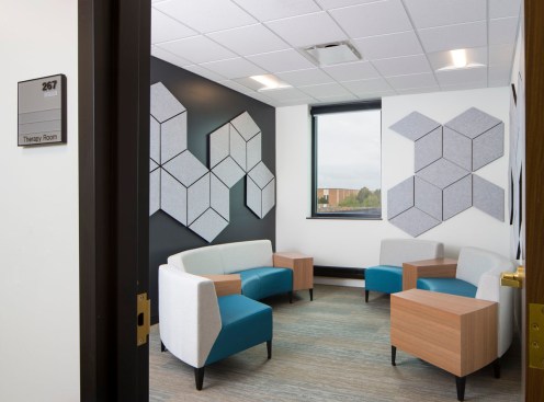 The new building integrates the various clinics into an interdisciplinary environment. The spaces will be inviting and soothing and maintain acoustic privacy for client confidentiality. Each clinic maintains its own identity and is also connected with the other units within the building. The building is designed for maximum patient serviceability, with clear wayfinding, daylighting throughout, and a warm, comforting environment. It has convenient access to the public and university.