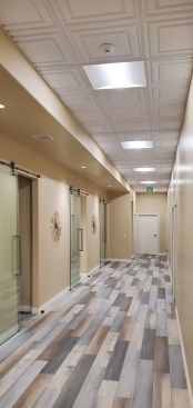 “These ceiling tiles really make the room look elegant. It would have been completely different with your typical drywall hard lid,” according to Draper. Ceilume ceiling panels are hygienic because they are impermeable to water, stain-resistant, and fully washable, allowing them to be installed throughout Cloud 9, in the reception and waiting areas, corridors, and even treatment rooms. The coffered looks that Cloud 9 selected are just two of the 50 styles and 16 colors and decorative finishes available.
