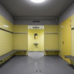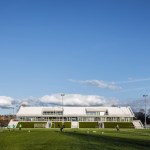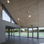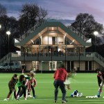 The build up of the new club house is logical. The changing rooms are at ground level, flush with the pitch. The canteen sits on top to enjoy the view.