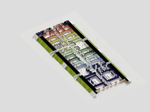 The urban plan positions the building in between the two main soccer fields and adjoining other pitches. The new club house tries to exploit the specific position.