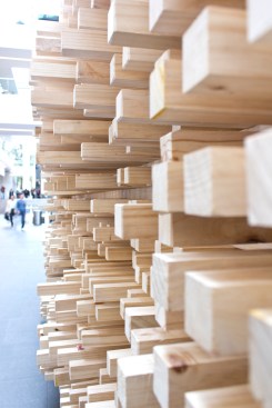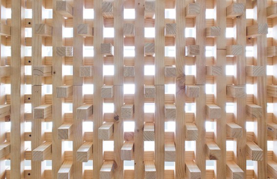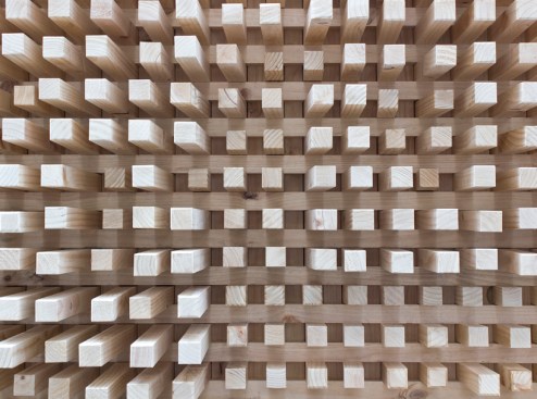 The project is a piece of 4 x 8 meters that consists entirely of pieces of wood 4 x 4 x 240 cm, achieving minimal waste and high ecological efficiency.